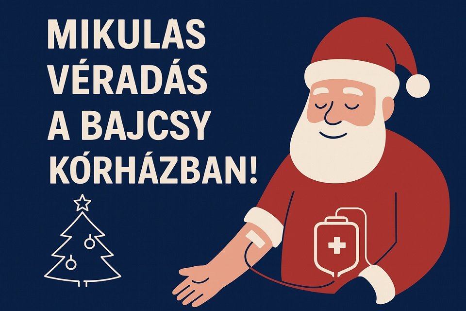 A Magyar Vöröskereszt és az Országos Vérellátó Szolgálat szakmai együttműködésével Kórházunk - immár hagyományként - 2024. december 5-én Mikulás-napi véradást szervez. Az eseményre minden egészséges, véradásra alkalmas személyt szeretettel várunk.