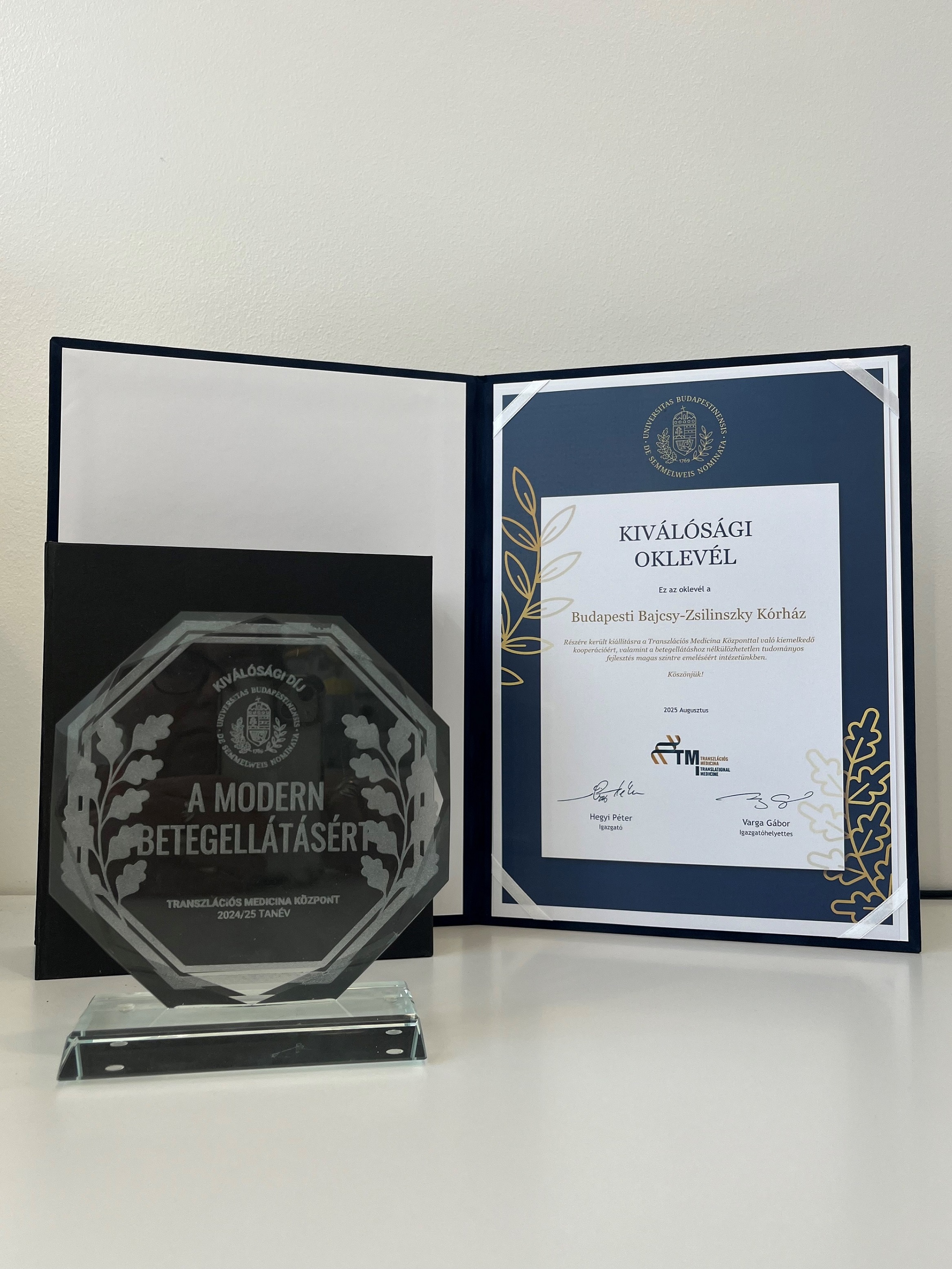 2025-ben Intézményünk, a Budapesti Bajcsy-Zsilinszky Kórház és Rendelőintézet kapta a „Modern Betegellátásért” Kiválósági Díjat a transzlációs szemléletű betegellátás fejlesztése iránt tanúsított kiemelkedő elkötelezettsége és példaértékű eredményei okán.